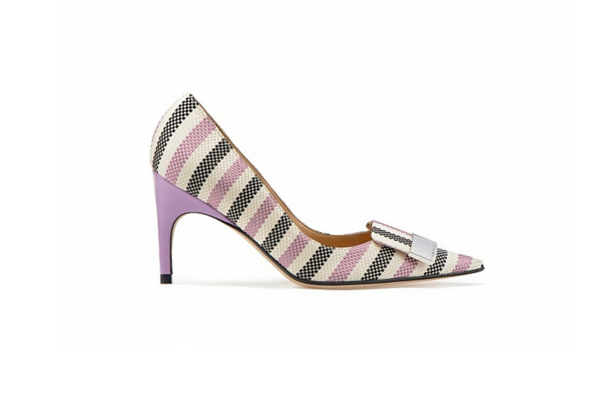 Escarpins pointus à rayures lila, noires et blanches à talon aiguille de Sergio Rossi