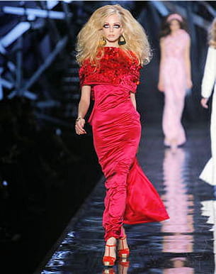 Beaucoup de raffinement et une touche de sensualité pour cette robe longue et taillée droite. Du rouge pour le côté glamour, c'est toujours une valeur sûre. En totale harmonie avec la silhouette, ce modèle en satin orné de broderies n'est pas prêt de passer inaperçu. On a le plaisir de retrouver dans toute une partie de la collection des couleurs acidulées, des robes version longue ou courte, selon l'envie. A moins que l'on ne préfère tailleur, jupe boule ou autre robe rose, orange, surpiquée de pampilles, drapée, bustier... ? Le choix est large.