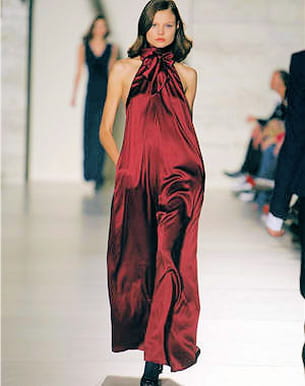 Chez Tommy Hilfiger, on joue toujours la carte du classique-élégant... Une valeur sûre pour ces dames ! Une touche de glamour bien entendu pour les robes du soir, comme cette brillantissime pièce rouge d'une extrême fluidité. On remarque les cravates lavallière partout au cœur de la collection, accrochées au col des robes du soir ou simplement nouées autour du cou... Sans oublier les drapés, les plis et d'autres détails chics, également de la partie, qui font toute la différence.
