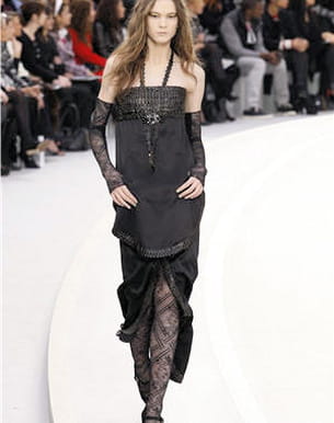 Du chic et du conventionnel pour cette collection signée Karl Lagerfeld. On note évidemment une apparition remarquée du célèbre tweed Chanel, dont on ne se lassera donc jamais. Suivie de tenues de soirée relativement strictes mais tellement élégantes. Différentes longueurs, mi-mollet, au-dessus du genou, des jupes et des robes qui n'ont pour seul devoir de sublimer les plus belles silhouettes. Comme cette magnifique et brillantissime tenue bustier "total black" pour une allure chic et décontractée à la fois.