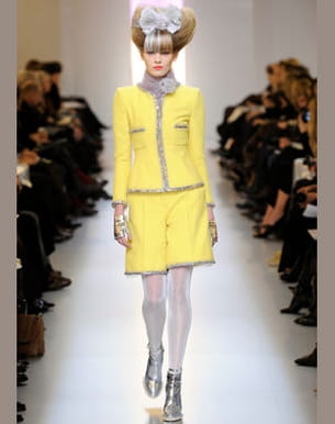 La nouvelle collection haute couture reste dans le plus pur style Chanel, avec plusieurs déclinaisons de la fameuse petite veste en tweed, portée tantôt avec une jupe, tantôt avec un bermuda. Les couleurs sont douces, du jaune pâle au rose poudré en passant par le gris et le parme. L'argent, sous forme de paillettes, de broderies ou de galons est également omniprésent, conférant une touche précieuse aux créations. Comme un clin d'oeil à son univers, Karl Lagerfeld a apporté quelques détails qui lui sont chers, comme les mitaines métallisées ou la cravate noire ornée d'un motif argenté.