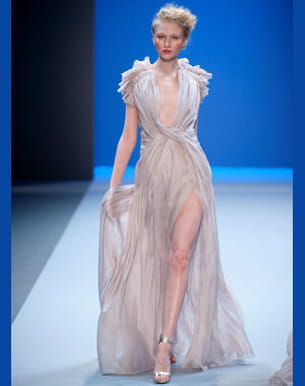 Des héroïnes passionnées de Jane Austen à l'amoureuse de "Bright Star", le dernier film de Jane Campion, les jeunes filles romantiques du XIXe sont des sources d'inspiration pour le couturier Christophe Josse. L'esprit bucolique de la campagne fait souffler un vent de fraîcheur sur des robes rebrodées de fleurs mais aussi de scarabées, dans des nuances tantôt brumeuses d'un ciel anglais, tantôt d'une pureté virginale.