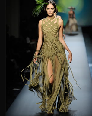 Très ethnique, cette robe signée Jean Paul Gaultier mise sur l'évasion. Ce modèle tressé et vaporeux a un petit goût de paradis. Avec son coloris vert, il s'inscrit d'emblée dans un autre registre et invite au voyage. Une robe originale pour donner une touche d'exotisme à la soirée.