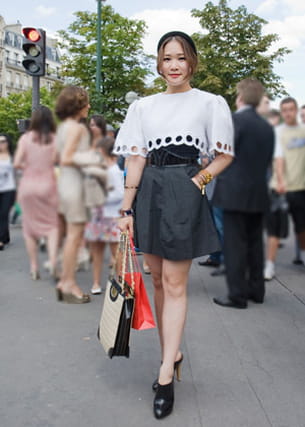 Son look : une robe Miu Miu, un top Rick Owens par-dessus lequel elle a ajouté une cape cousue par sa mère, des bijoux Hermes, un sac Chanel vintage des années 1990 et des chaussures Yves Saint Laurent.