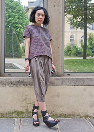 Son look : un top Céline, un pantalon Haider Ackermann et des chaussures Rick Owens.