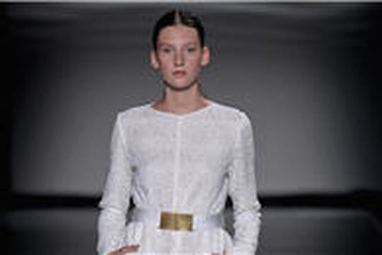 A l'instar de son emblème, la grenade, fruit sensuel et généreux, Rabih Kayrouz a dévoilé une collection automne-hiver 2011-2012 qui colle à l'image de la femme. Subtil mélange entre haute couture et prêt-à-porter, il délivre une ligne des plus poétiques où émotion et rigueur se dégagent. Les silhouettes sont bouleversantes de fraîcheur, les cheveux sont retenus en arrière par une simple queue de cheval, les épaules sont échancrées et les jambes dénudées. C'est d'une démarche lente et sereine et les pieds nus, baignant dans l'eau, qu'il a fait défiler ses mannequins. Le son du joli clapotis ainsi provoqué n'est pas sans rappeler les paisibles journées passées en bord de mer. Pour les tenues, le couturier a choisi des textures légères et aériennes à base de broderies anglaises, de guipure, de coton laqué, de maille lâchée ou dévorée. Les pièces sont charmeuses et féminines à souhait. Et pour la couleur, ce ne sera rien de plus qu'une gamme de blancs rythmée par du marine lui-même rehaussé de jolies touches citron. Une teinte des plus pétillantes qui donne l'illusion d'une pluie de poudre d'or pour la touche chic et glamour. Le tout dans une ambiance très "garden party" où les robes immaculées sont à l'honneur. Une collection où fraîcheur rime avec classe.