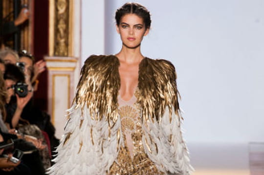 Zuhair Murad s'impose en sérieux concurrent de son homologue libanais, à savoir Elie Saab. Dans le salon de l'hôtel Westin, il nous emmène au paradis avec une collection céleste et inspirée. Il croise les différentes inspirations entre baroque et antique pour toujours réinventer une forme de modernité. Ses modèles, coiffés d'une couronne de laurier doré, s'avancent, vestales presqu'iréelles, parées d'or et de sequins. Car Zuhair Murad signe une collection proche de l'enchantement où les robes jouent de la transparence pour un rendu aérien. Ici, le savoir-faire des différents métiers d'art est subtilement mis en valeur comme celui de l'atelier plumassier Lemarié ou encore le travail d'orfèvre des maisons de broderie Vermont et Lesage. Rien n'est trop beau pour les déesses imaginées par le couturier qui les magnifie de tissus précieux et de détails divins.