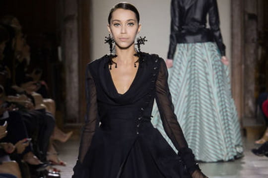 Mystérieuse, presque dangereuse. La femme Julien Fournié a dominé l'antre de L'Oratoire du Louvre. Foulant à pas lents le sol à damiers de l'église, elle envoûte tout sur son passage. Pour imaginer ses 25 modèles haute couture, le créateur s'est inspiré de figures sombres. "J'ai voulu une collection pour des femmes ensorceleuses, inspirées de Twin Peaks ou d'Egar Allan Poe," explique-t-il dans Haute, un quotidien dédié à l'excellence et au savoir-faire à Paris. Sur le catwalk, on a découvert des silhouettes vêtues de noir. Une couleur saisissante tantôt revêtue et rebrodée de pierres de la même teinte, tantôt nue pour mieux laisser la matière s'exprimer. Mais le noir a aussi laissé place a des couleurs vives. Rose, jaune citron et vert émeraude ont également habillé les maléfiques de Julien Fournié. Les coupes franches sublimaient avec une extrême précision les épaules, la taille, le dos. Des jupes fendues en soie laissaient entrevoir les jambes avec délicatesse. Le décolleté parfois profond pouvaient également se dissimuler dans des veste cintrées au col haut.