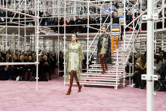Le musée Rodin était transformé, lundi 26 janvier après-midi, en un vrai jeu Meccano. A l’occasion du défilé haute couture printemps-été 2015 de Dior, une immense structure de plusieurs étages, faite d’échafaudages blancs au milieu desquels déambulaient des mannequins tout droit sortis des années 50, était érigée. Le sol rose poudré et les nombreux miroirs rajoutaient à l’ambiance vintage et à l’ADN d’origine de la maison de couture Christian Dior. Ce show évoquait bien évidement le passé de ces années pop mais aussi, et c’est là toute la subtilité du concept, l’idée qu’on se faisait du futur à cette époque. Et quelle harmonie entre ce décor "Passé/futur de science-fiction" et l’ensemble de la collection imaginée par Raf Simons !
