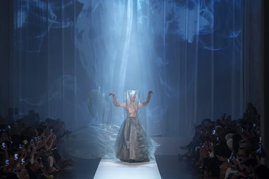 Une fois n'est pas coutume, et cela n'a rien d'anecdotique, le show haute couture de Jean Paul Gaultier démarre avec un défilé masculin d'une quinzaine de silhouettes. Les hommes sont seuls, sûrs d'eux. Puis les passages féminins débutent, ponctués ça et là de couples mixtes, le tout pour asseoir le concept encore flou de l'égalité homme/femme. Pour cela, le couturier brouille les codes, en maquillant et habillant les hommes en femmes, et retourne des situations sexistes trop souvent intégrées dans de nombreuses cultures. Ainsi, il en est fini de la femme objet. Chez Gaultier, elle est androgyne et assume ouvertement son leadership en menant à la baguette son "toy boy" qui marche quelques pas derrière elle. Au fil des silhouettes, la collection, presque intégralement conçue autour du noir et blanc, démontre une véritable cohérence dans la confusion des genres avec un dressing mixte, presque interchangeable, fait de pièces iconiques revisitées, déconstruites et détournées. La panoplie du cavalier est revue et corrigée, le smoking en prend pour son grade et le costume d'homme est totalement customisé. En effet, le pantalon à pince est découpé pour se transformer en short, alors que les tissus tubulaires des jambes muent en cuissardes.