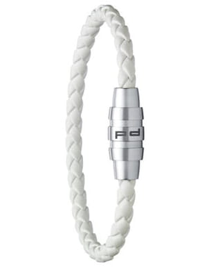 Contemporain, ce bracelet marie l'élégance du cuir tressé blanc à la sobriété de l'acier.
