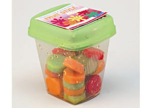Ces rondelles colorées ne sont pas des pâtes de fruits mais des bouchées de poisson aux saveurs fruitées et acidulées (citron, agrumes, orange, pomme verte et fruits rouges). Elles sont vendues en pot refermable pour se grignoter comme des friandises. Reste à savoir si le goût plaira aux consommateurs.