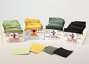 Ces petits carrés à base de semoule de blé dur aromatisée, colorée et séchée, permettent de préparer facilement des raviolis originaux. Ils cuisent en 5 minutes à l'eau bouillante et d'adaptent à toute les farces. Disponibles pour l'instant uniquement pour les restaurateurs professionnels, ils devraient bientôt débarquer dans les épiceries fines.