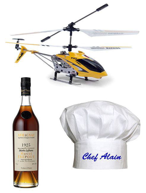 Hélicoptère télécommandé, Stylo espion avec caméra vidéo, Polo de rugby à son prénom, Bouteille de vin personnalisée, etc. N'hésitez plus !