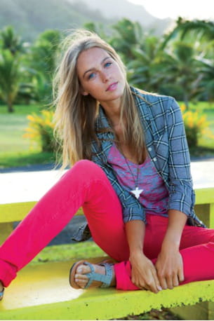 Le slim coloré est indispensable dans une garde-robe d'ado ! En journée ou en soirée, toutes les fashionistas frimeront avec ce pantalon fuchsia très tendance. Et pour être au top, on assortit la fameuse chemise à carreaux, pièce indispensable de l'été.