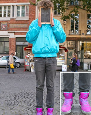 Du haut de ses 16 ans, Luka sait déjà ce qu'il veut en matière de look. La preuve avec cette photo très "Fluokid", cette tendance qui mixe les couleurs flashy façon années 80. Il est habillé en Rainbow collection, jean slim et chaussures Reebok, des années 80 bien sûr...