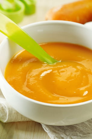 Si votre enfant connaît déjà bien le goût de la carotte, vous pouvez agrémenter cette crème de carottes de persil ou cerfeuil haché.