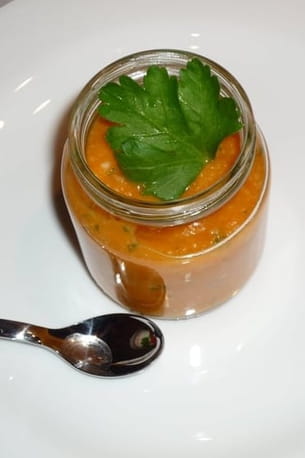 Faites cuire une tranche de potiron dans le panier vapeur. Ajoutez une poignée de riz et 2 branches de persil et mixez le plus finement possible. Ajoutez de l'eau, ou un bouillon de légumes frais, jusqu'à obtenir la texture souhaitée (soupe ou purée). Faites cuire le riz, jusqu'à ce qu'il ait l'apparence d'un risotto (vider, le cas échéant, l'excédent d'eau). Une fois le potiron cuit, évidez-le et mixez sa chair que vous pourrez alors mélanger au riz bien cuit.
