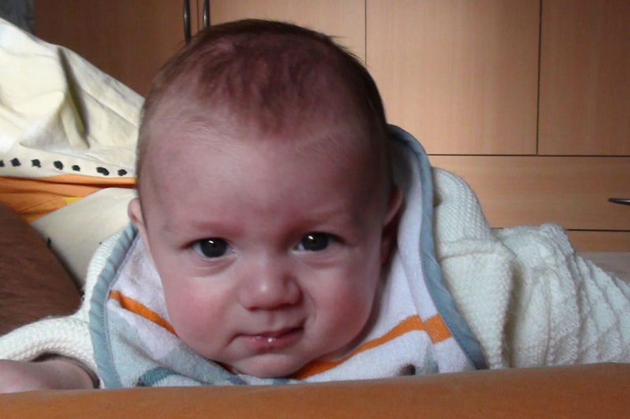 "Quoi ? T'as osé prendre mon biberon !" semble s'énerver Ilann, 8 mois.