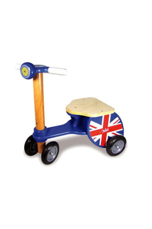 Pour se déplacer en toute sécurité, ce triporteur Vilac est parfait. Avec son drapeau anglais, votre enfant va l'adorer. Il y a même un coffre à l'arrière pour y ranger son doudou !