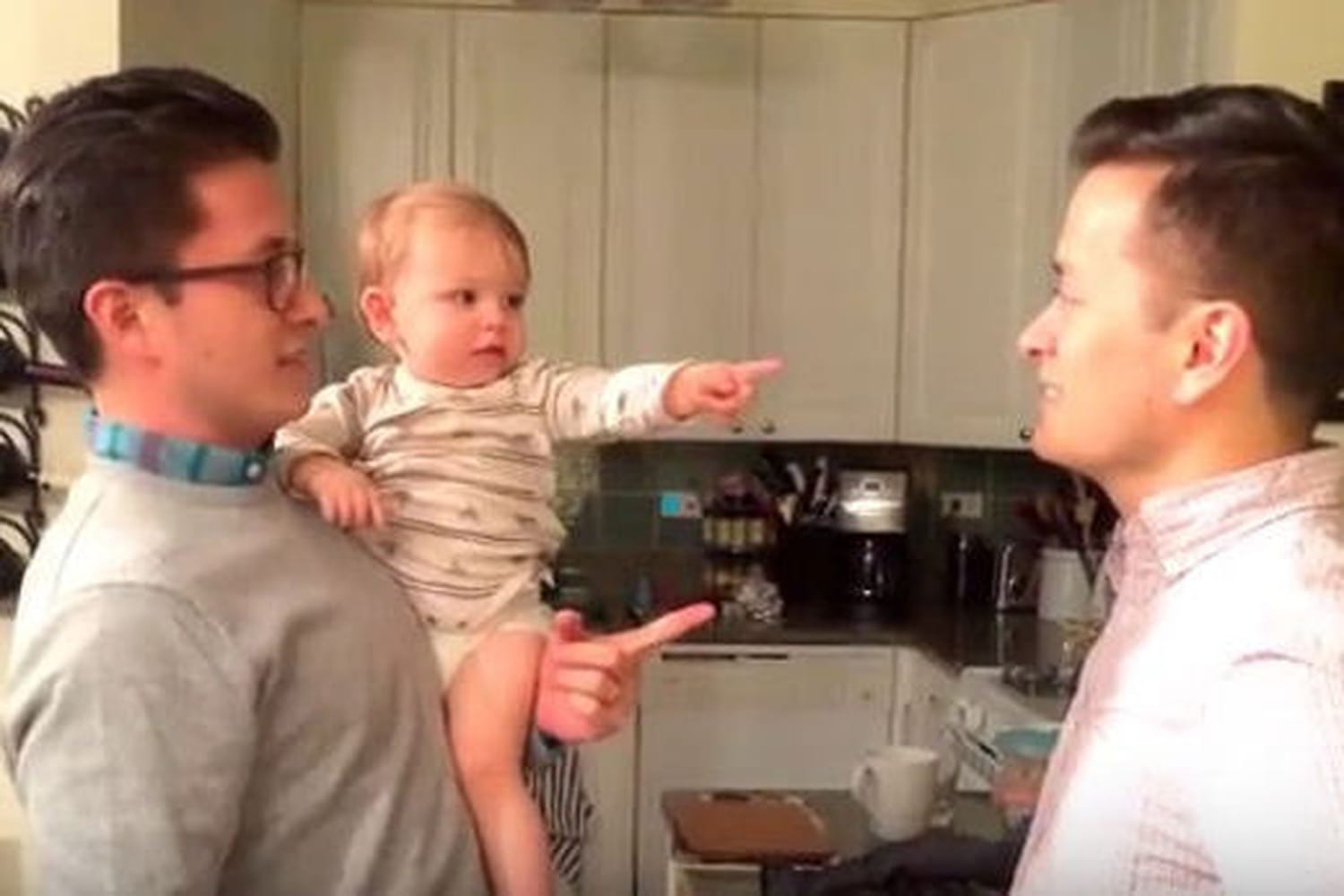 Mais qui est qui ? C'est sans aucun doute la question que se pose ce petit garçon âgé de 16 mois qui a rencontré pour la première fois le jumeau de son papa. Et le moins que l'on puisse dire, c'est que ça l'a quelque peu perturbé. On voit en effet le petit Reed se tourner vers l'un puis vers l'autre et s'interroger : "Dada ?" Il est en effet impossible pour le bambin de différencier son père Stephen, qui porte un pull gris, de son oncle Michael en chemise rose. Et à chaque fois qu'il se retrouve dans les bras de l'un, il veut aller dans les bras de l'autre. Il faut dire que les jumeaux, en portant et en enlevant leurs lunettes, ne font rien pour aider le petit garçon. Son papa a en effet affirmé à Buzzfeed que Reed n'a pas l'habitude de le voir porter des lunettes. Ce n'est ainsi pas facile de retrouver son "dada" !