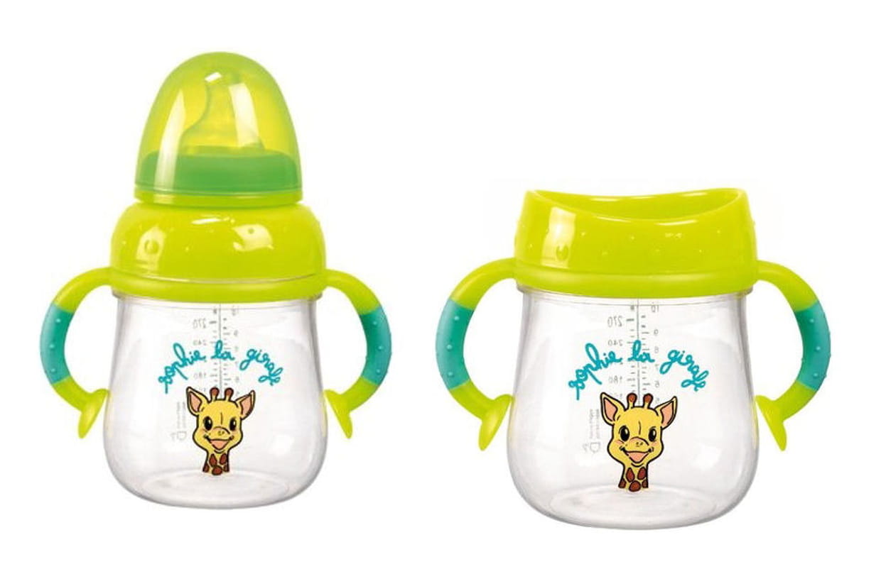 La tasse évolutive 3-en-1 Sophie la girafe aide votre enfant à passer progressivement du biberon au gobelet. Le biberon s'utilise dès trois mois. Un embout avec bec ergonomique évite ensuite les fuites, grâce à une valve qui permet à l'enfant de boire sans renverser. Place ensuite au gobelet pour faire comme les grands !