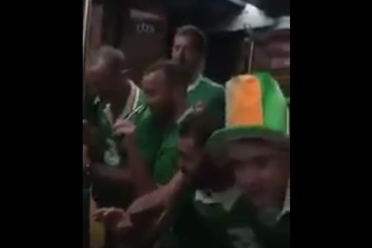 [VIDEO] - Les Irlandais n'en finissent pas de faire parler d'eux et d'attendrir tous ceux qui croisent leur chemin. Après avoir fait une déclaration à une passante et chanté à la gloire de la police française, les supporters ont cette fois fredonné une berceuse à un bébé croisé dans le tram de Bordeaux. Tranquillement assis sur les genoux de son père, le bébé était entouré d'une dizaine de fans de foot. Et bien qu'ayant perdu ce soir-là 3-0 contre la Belgique, ces derniers ont conservé leur bonne humeur communicative. Sous le regard amusé du jeune papa et des autres voyageurs, leur petite comptine a semble-t-il captivé le nouveau-né. Et lorsque l'un des supporters tente de changer de musique en lançant "Will Grigg's on fire", ses camarades le font rapidement taire et rappellent aux autres passagers du tram qu'un bébé est à bord : "Chuuuut ! Il y a un bébé !". Après les débordements qui se sont produits au début de l'Euro 2016 à Marseille, cette vidéo à la fois tendre et amusante, donne une meilleure image des supporters étrangers.