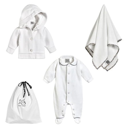 Cadeau de naissance composé des trois pièces présentées dans un joli sac : 124 euros