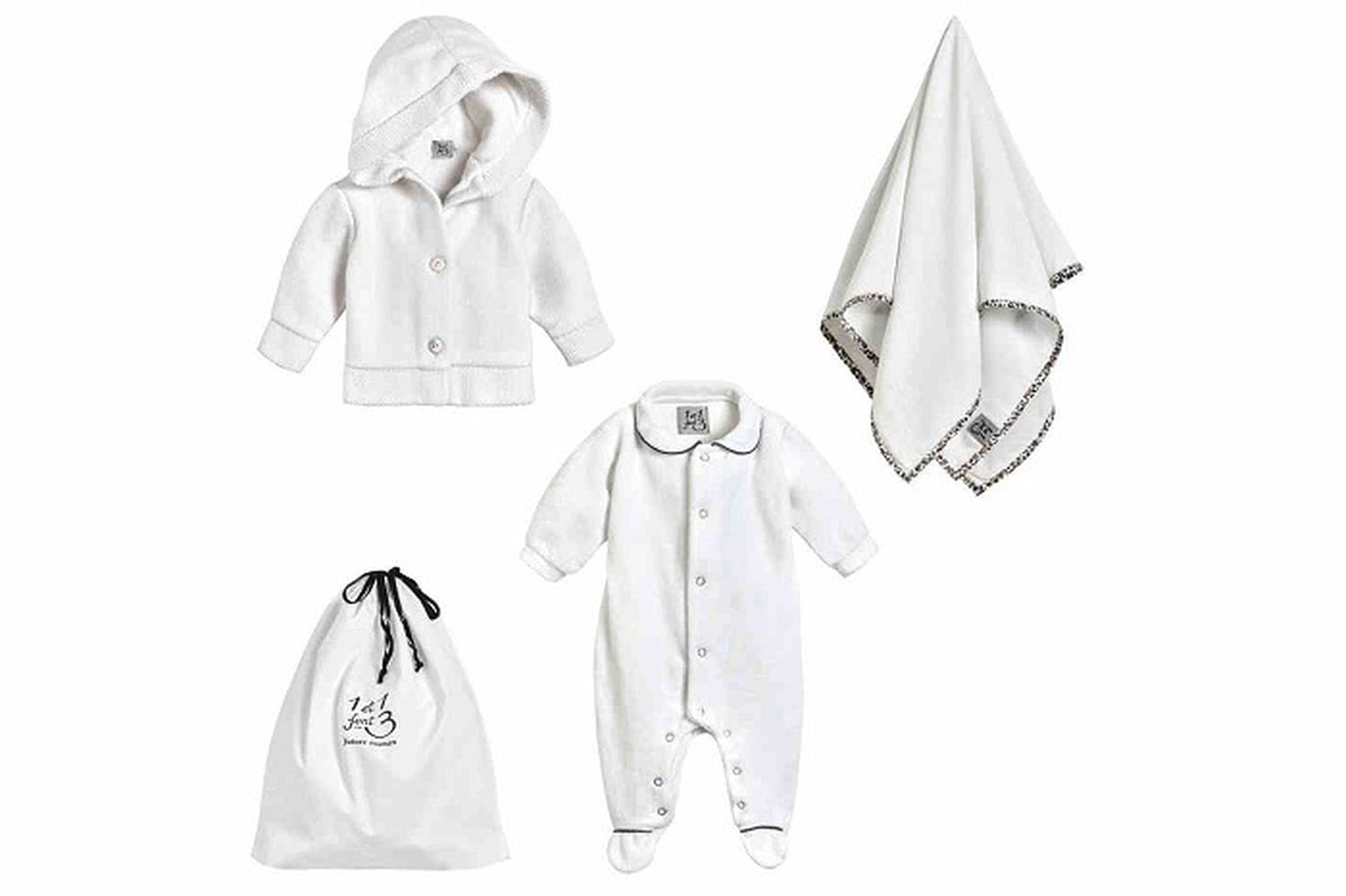 Pour ses 20 ans, 1 et 1 font 3 a imaginé une élégante collection capsule pour les bébés composée de trois pièces. Un joli cadeau de naissance.