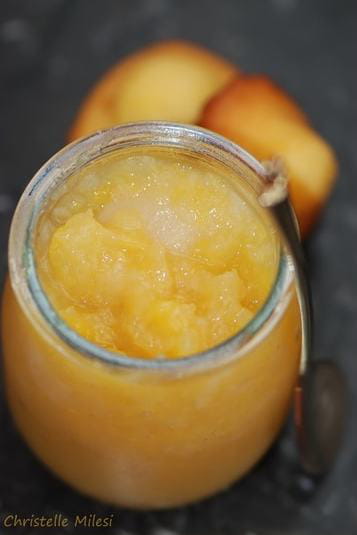 Compote de pêches, de poires et de pommes. © Christelle Milesi