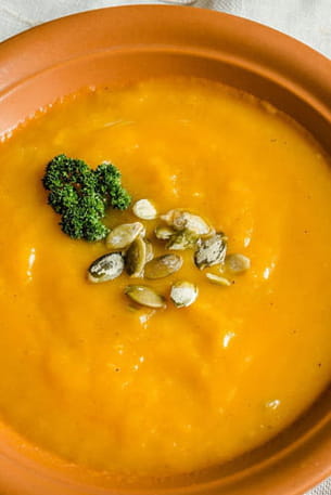 Particulièrement apprécié des bébés, le potiron est l'ingrédient principal de cette recette de soupe où sa douceur est accentuée par celle de la pomme de terre. Attention : le potiron doit être bien épépiné.