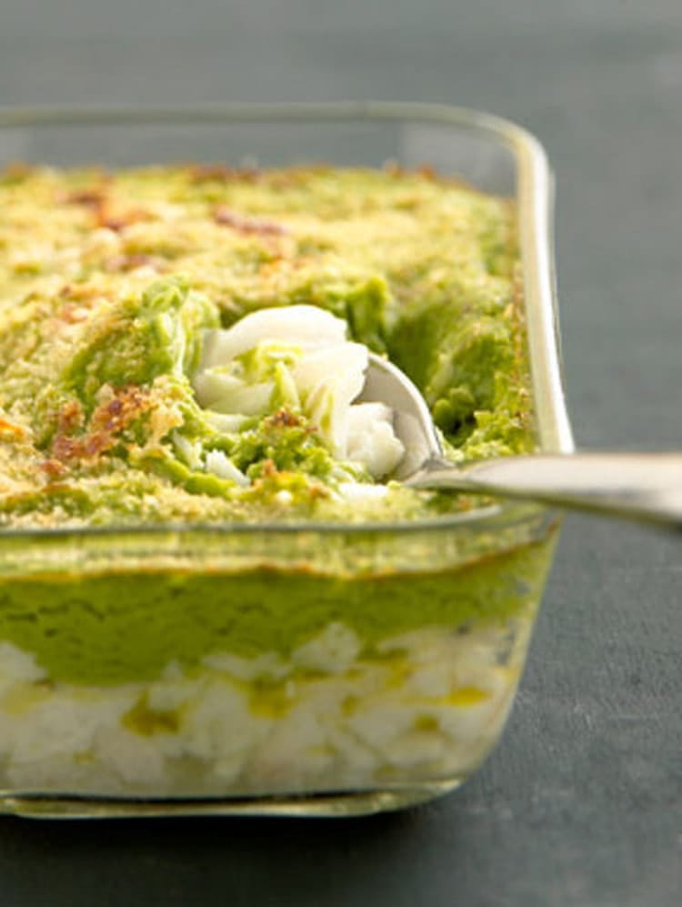 Voir la recette du gratin de cabillaud et sa purée verte.