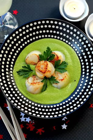 Les jeunes mamans qui surveillent leur ligne après l'arrivée de bébé vont adorer cette recette à base de noix de Saint Jacques fondantes à souhait et de cresson qui aide la lactation.