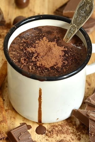 En hiver ou après une longue journée d'école, le chocolat chaud est réconfortant. Mais celui-ci est préparé avec des vrais copeaux de chocolat, du bon lait chaud et une pincée de sucre vanillé.