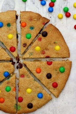Un cookie géant à partager ? Voici une bonne idée de goûter, simple et ludique ! Réalisez une pâte à cookie classique et décorez-la avec des bonbons multicolores !