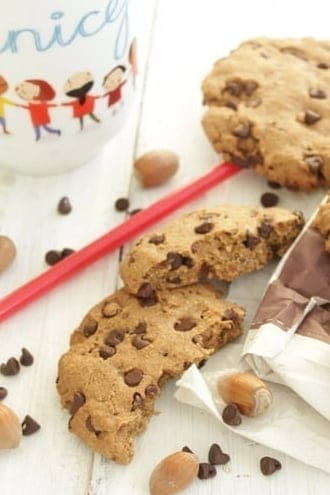 Des cookies sans beurre, vous pensiez que ce n'était pas possible ? Eh bien si, avec cette recette de cookies à la purée de noisettes, aux pépites de chocolat et à la farine complète. Parfaits pour un goûter rapide, gourmand et équilibré !