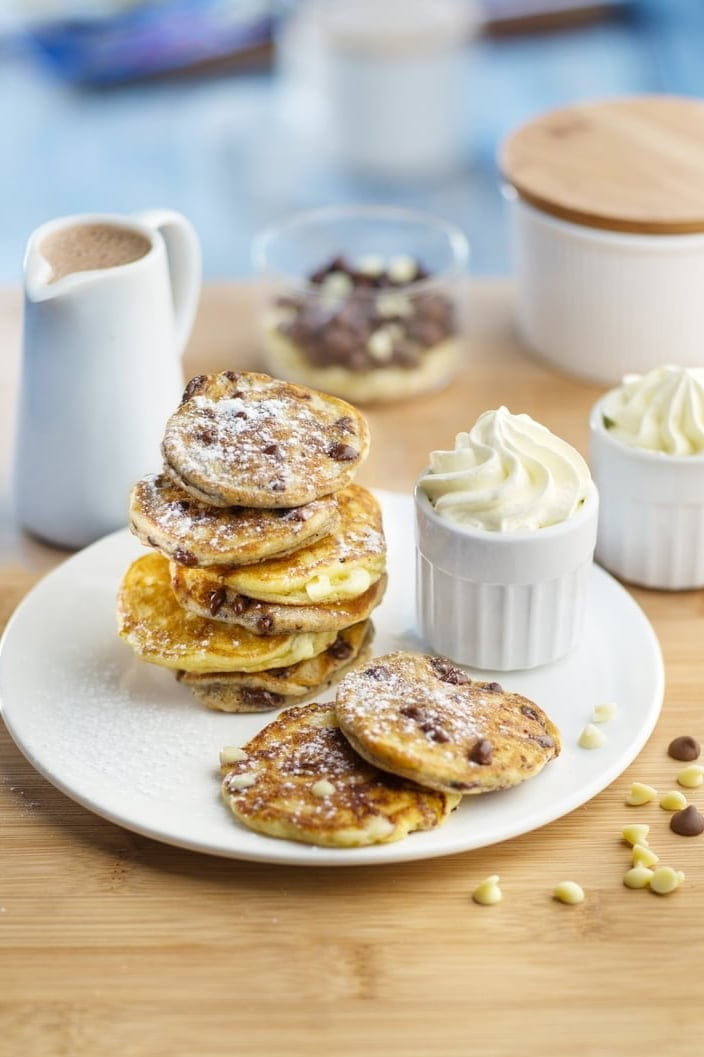Chandeleur ou pas, les crêpes, les enfants en raffolent ! Celles-ci sont en version mini avec des petites pépites de chocolat blanc et noir. Un vrai régal !