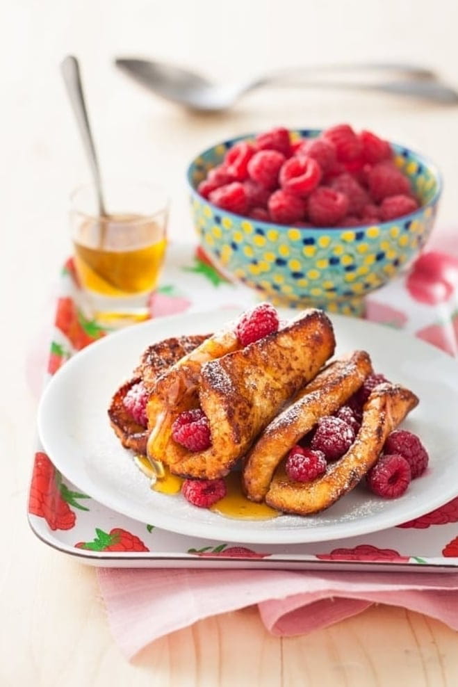 Le pain perdu est super rapide à faire et permet de ne pas gaspiller les restes de baguette ou de brioche ! Celui-ci est tout imbibé de miel et parsemé de petites framboises fraîches. Idéal pour un goûter rapide, gourmand et équilibré !