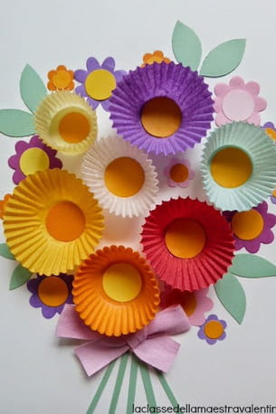 Des moules à madeleines colorées, un peu de découpage et de collage... et vous obtiendrez ce joli tableau en 3D, à encadrer et à offrir à maman pour la fête des mères, accompagné d'un mot tout doux.