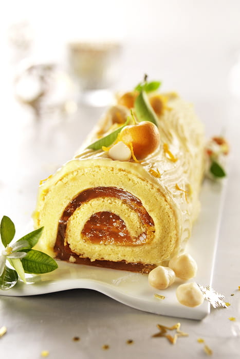 Bûche de Noël à la mandarine et aux noix de Macadamia