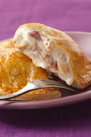 Que cachent ces petits chaussons ? Des morceaux de dinde, de la béchamel et des champignons émincés. De quoi ravir les papilles des enfants lors des fêtes de fin d'année !