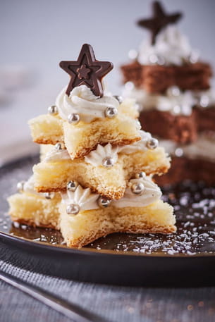 Et si, pour Noël, vous réalisiez en famille une forêt de sapins moelleux ? Décorez-la de crème Chantilly au mascarpone et de sujets en chocolat pour encore plus de gourmandise. En 30 minutes, vous avez un dessert féerique et éblouissant !