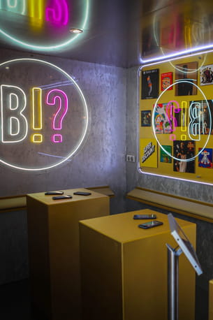 Le principe d'un blind test est simple : on passe une chanson, et la première personne qui trouve l'artiste remporte le point. Chez Bl!ndt?st, ce concept se réinvente grâce à la reconnaissance vocale. Entre 2 et 10 participants sont réunis dans une salle et doivent être équipés de smartphone. C'est cette technologique qui détectera qui a donné la bonne réponse en premier. Il y a le choix entre trois salles : Crazy In Love, Drive My Car et In Da B=Club. Chaque manche comprend 15 chansons, et le niveau est adapté à l'âge des participants.