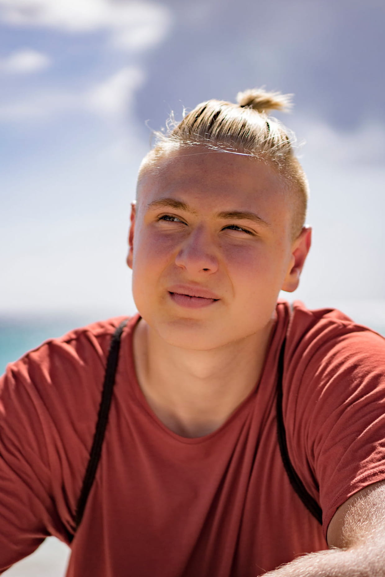 Certains garçons décident de se raser les côtés et l'arrière du crâne presque à blanc, tout en gardant une mèche d'une belle longueur sur le dessus. On peut alors l'attacher en queue de cheval ou en chignon voir, pour les plus audacieux, tresser cette mèche.