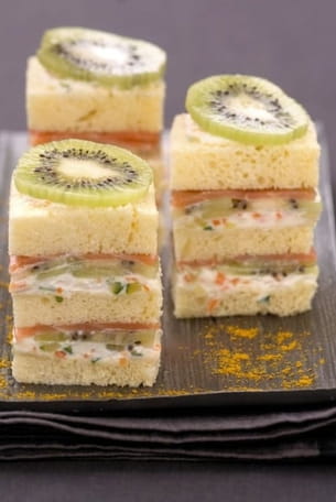 Minis sandwichs au kiwi, saumon fumé et fromage frais
