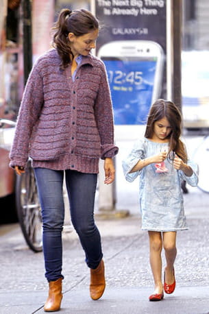 A 6 ans, la petite Suri est déjà une véritable icône de la mode ! D'ailleurs, elle a adopté le look idéal pour une virée shopping à New-York puisqu'elle porte une jolie robe bleu pastel rehaussée par des ballerines rouges vernies. Katie Holmes, elle, porte une chaude veste en laine et des bottines en cuir naturel. Un look à croquer pour ce duo qui se ressemble tant !