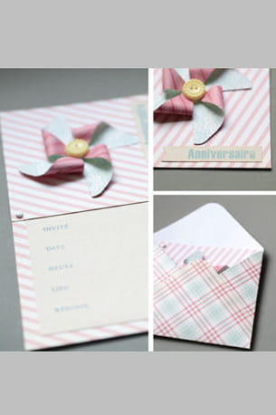 3e étape : collez le moulin à vent sur la carte d'anniversaire. © Virginia Le Magoarou