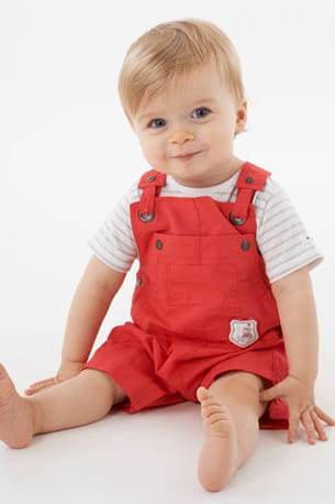 Aussi rouge qu'un camion de pompier, cette salopette devrait plaire aux petits garçons. Pour parader au parc ou épater les copines, elle est l'atout des mini charmeurs. Elle est vendue avec un joli tee-shirt blanc à fines rayures.