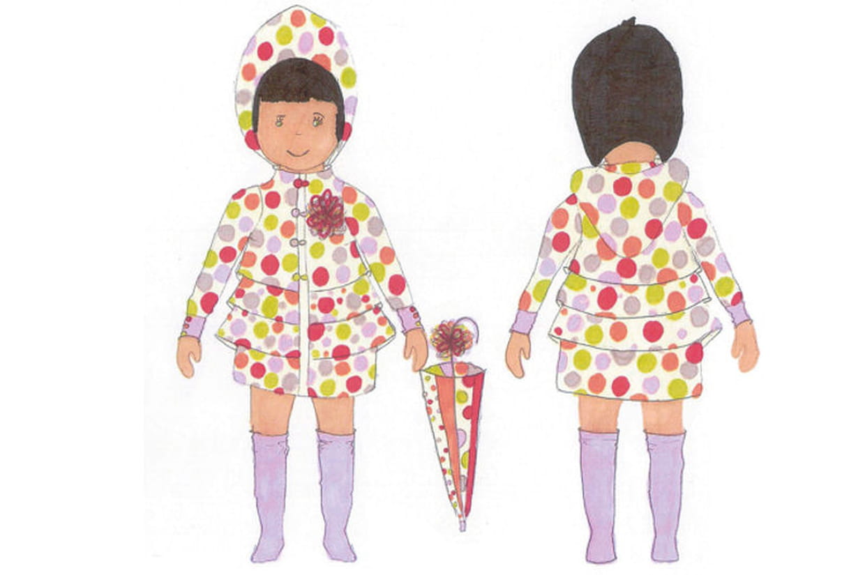 Ludivine, 8 ans, aime les imprimés pop et girly ! Originaire de Belgique, elle imaginait son imperméable avec de jolies couleurs vives mais douces et agrémenté d'une petite fleur sur la poitrine pour les jours de pluie dans son pays. Adorable, non ?