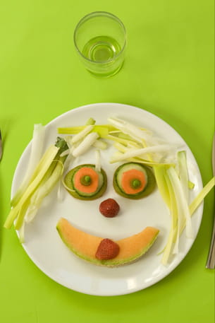 La présentation est donc très importante. C'est super de réaliser des assiettes créatives comme des bonhommes souriants par exemple. Si la maman n'est pas très imaginative, il faut au moins essayer de faire attention aux couleurs.